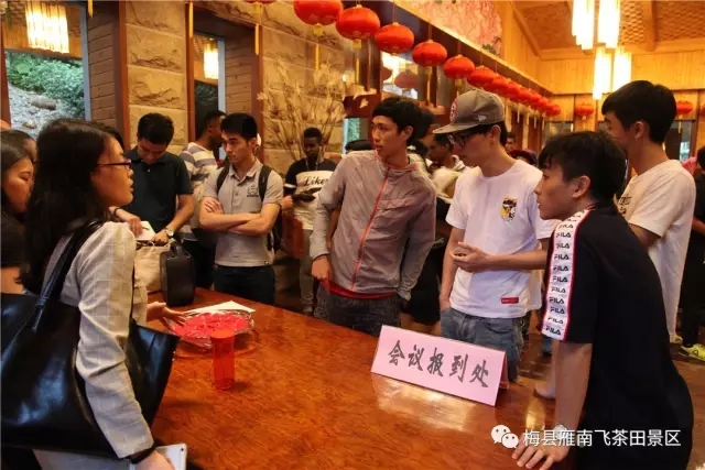 梅州雁南飞茶田有限公司总经理谢斌向梅州市人民政府副市长张晨汇报活动筹备情况。