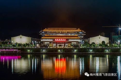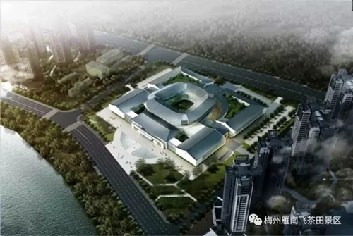 世界客商文化中心位于梅州城区芹洋半岛品牌战略发展区,规划总面积83亩,总建筑面积约4.9万平方米,工程总投资5亿元。设计上突出了客家传统建筑元素和符号,既传承客家建筑文化,又体现新时代的要求,力求打造成“世界客都”的地标性建筑。按照设计,世界客商文化中心包括办公区、展区、商务区、餐饮区四个功能分区。
